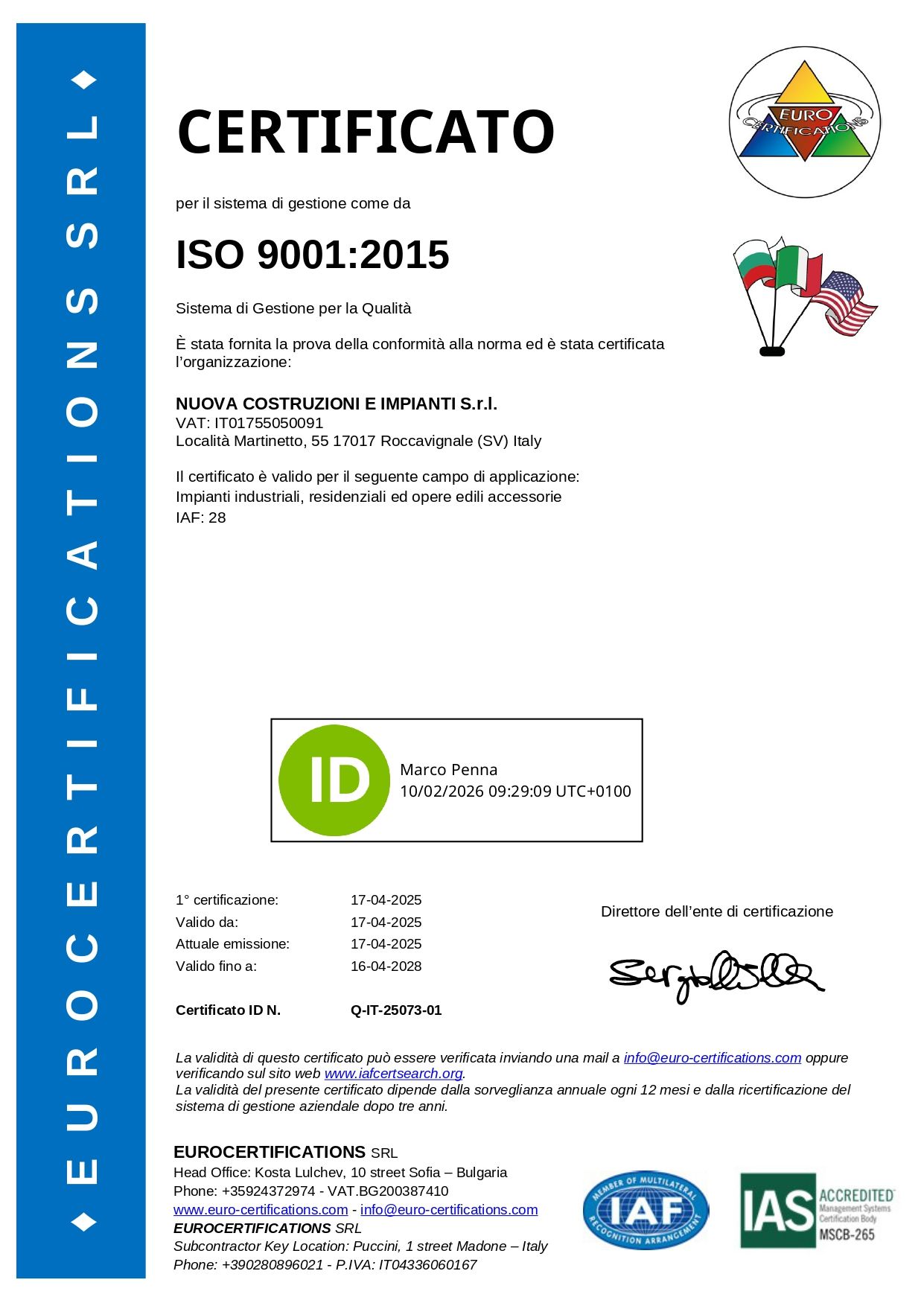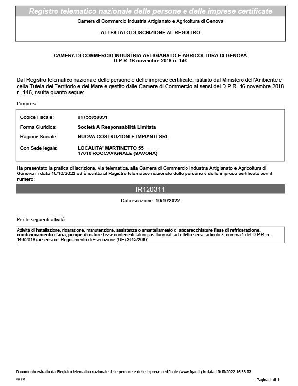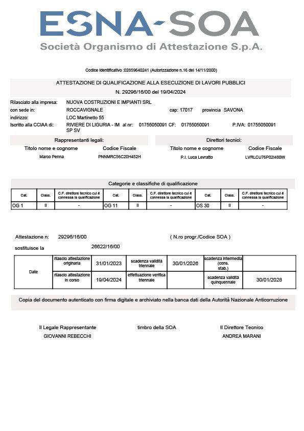 Nuova Costruzioni e Impianti S.r.l. - P.IVA 01755050091 - Sede legale Loc. Martinetto, 55, 17017 Roccavignale (SV) - Capitale sociale e Codice REA 10.000,00 € / SV-207996 - Privacy policy - Preferenze cookie - Sito creato da etinet.it