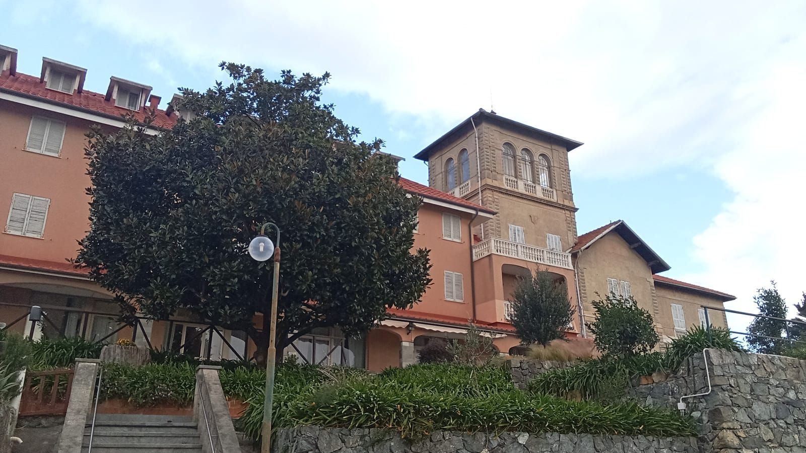 Potenziamento impianto di riscaldamento servizi igienici per le 40 camere della struttura ricettiva "Villa Divin Redentore" di Cogoleto (SV). Uno stupendo edificio risalente a fine 800 primi del 900 in pieno stile Liberty. Modifica locale tecnico esistente con l'inserimento di un nuovo accumulo ,riscaldato da una serpentina in tandem alla caldaia esistente, circa 200 metri di tubazione press-fitting in Aisi 316 installata esternamente alla struttura, circa 200 mt di tubazione multistrato per le dorsali interne all'edificio con successivo montaggio e collegamento di 40 termo-arredi idraulici nei servizi igienici della cemere.